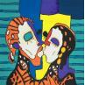 Karla Gorigoitia is a Chilean artist. Thanks to her studies in Plastic and Dramatic Arts, she fuses these fields and uses theatrical techniques to give life to different characters, diverting them and creating masks. Interested in color, matter and paper tearing, the artist combines acrylic, collage and writing in her pictorial compositions. Each of her canvases can be seen as a play, with the text hidden behind the colors. She has exhibited in Europe, the United States, Latin America and China.