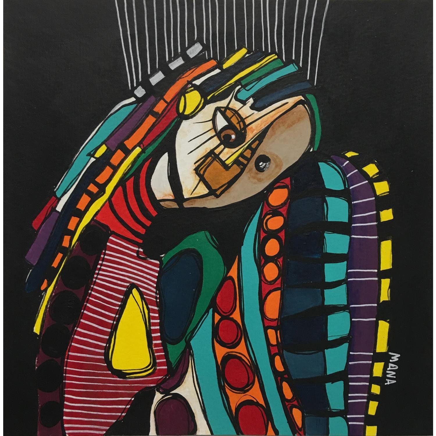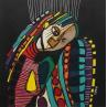 Karla Gorigoitia is a Chilean artist. Thanks to her studies in Plastic and Dramatic Arts, she fuses these fields and uses theatrical techniques to give life to different characters, diverting them and creating masks. Interested in color, matter and paper tearing, the artist combines acrylic, collage and writing in her pictorial compositions. Each of her canvases can be seen as a play, with the text hidden behind the colors. She has exhibited in Europe, the United States, Latin America and China.