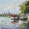 This unique and original contemporary artwork "Péniches Pont Alexandre III" on the subject of Urban has been created by the contemporary artist Lallemand Yves.