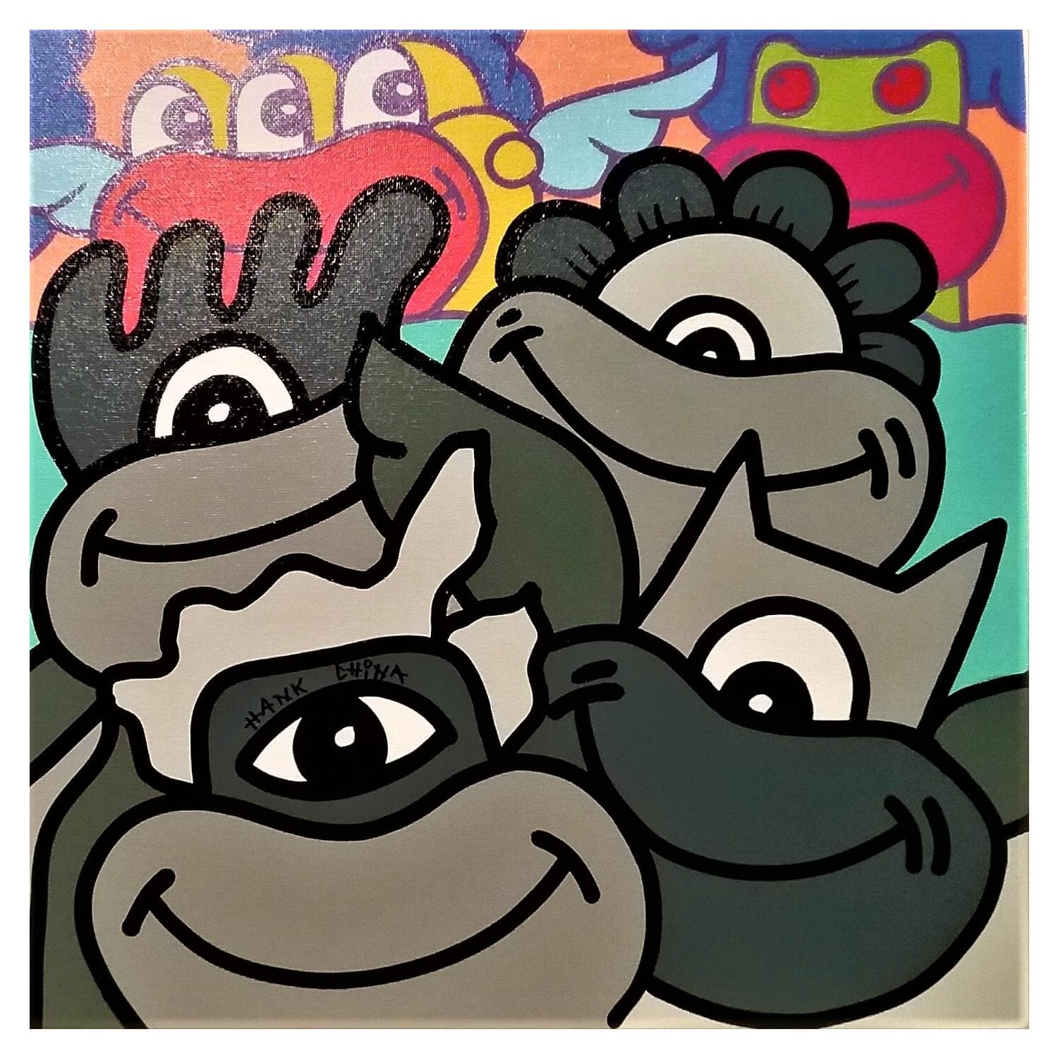 This unique and original contemporary artwork "La fiesta chez Dédé" on the subject of Pop icons has been created by the contemporary artist Hank China.