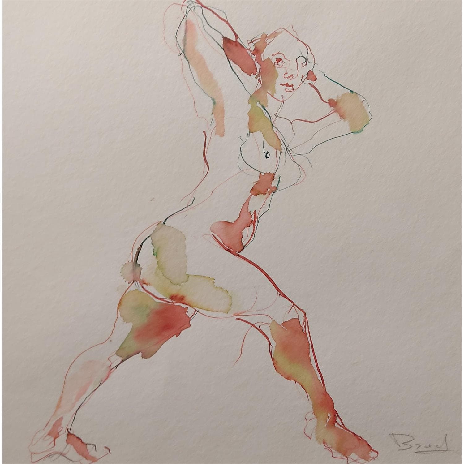 The artist used Watercolor medium on Paper to create this Figurative, Small size painting.