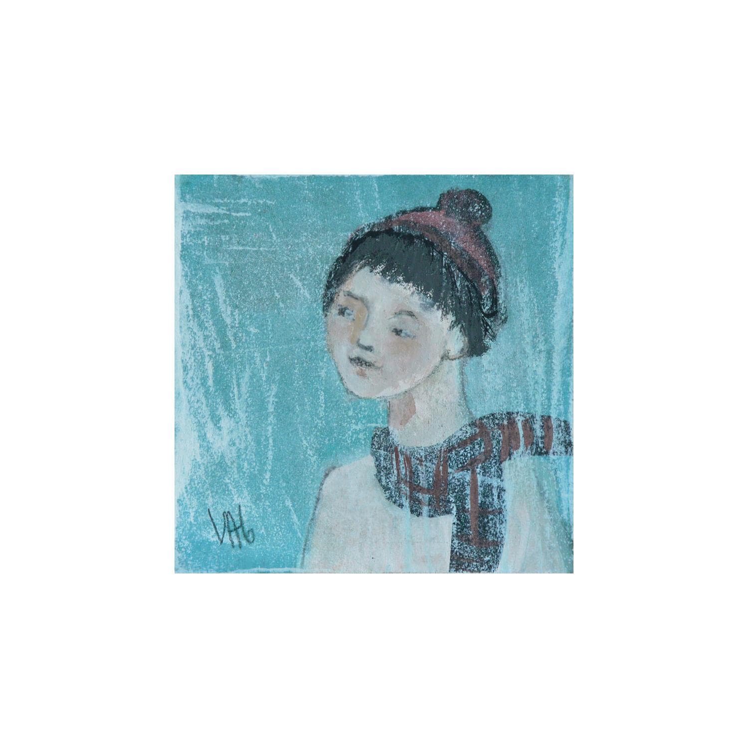 The unique and original artwork L'hiver is a creation by the artist Valérie Anceaume Gutierrez, who paints portraits and characters of colors, yellow, red, blue that let us dive into the states of mind of dreamy melancholy persons.