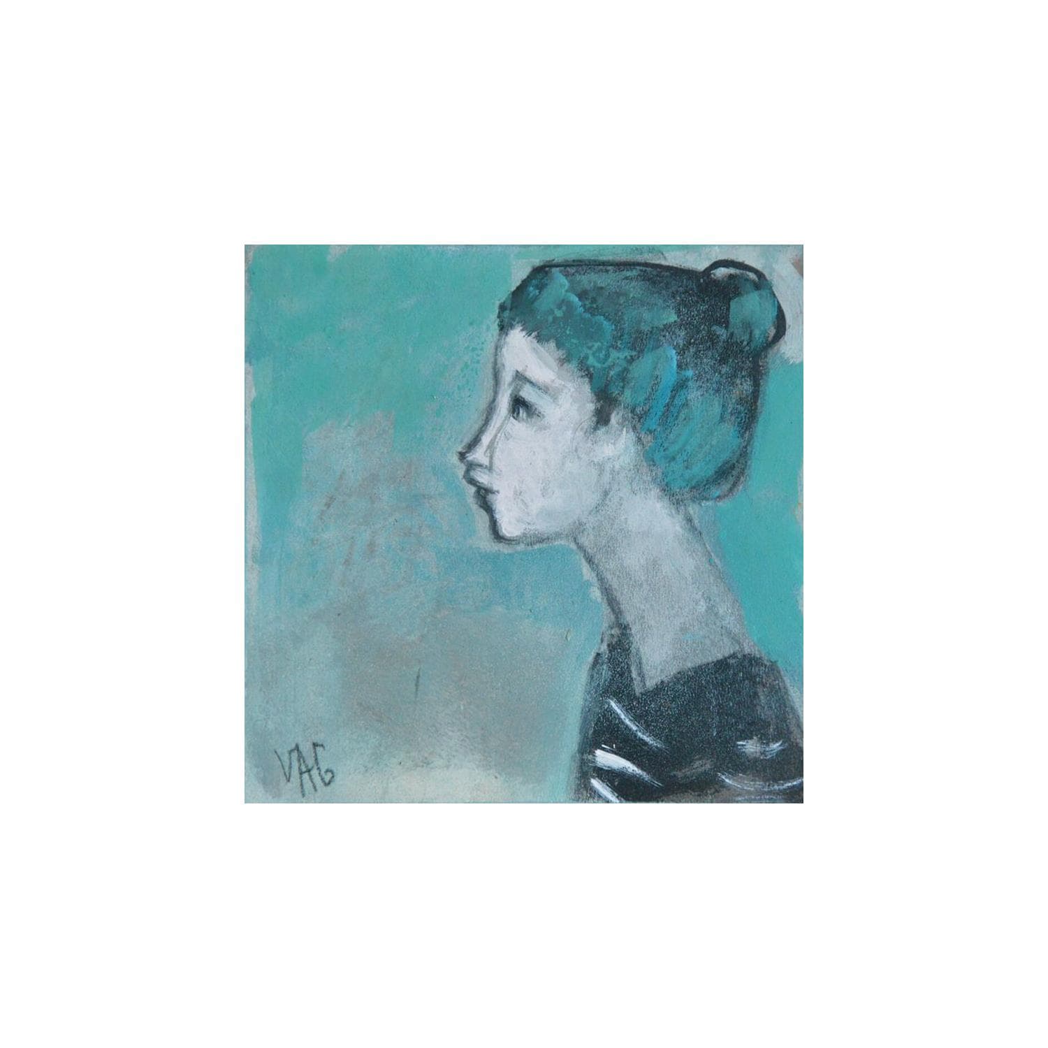 The unique and original artwork Voyage is a creation by the artist Valérie Anceaume Gutierrez, who paints portraits and characters of colors, yellow, red, blue that let us dive into the states of mind of dreamy melancholy persons.