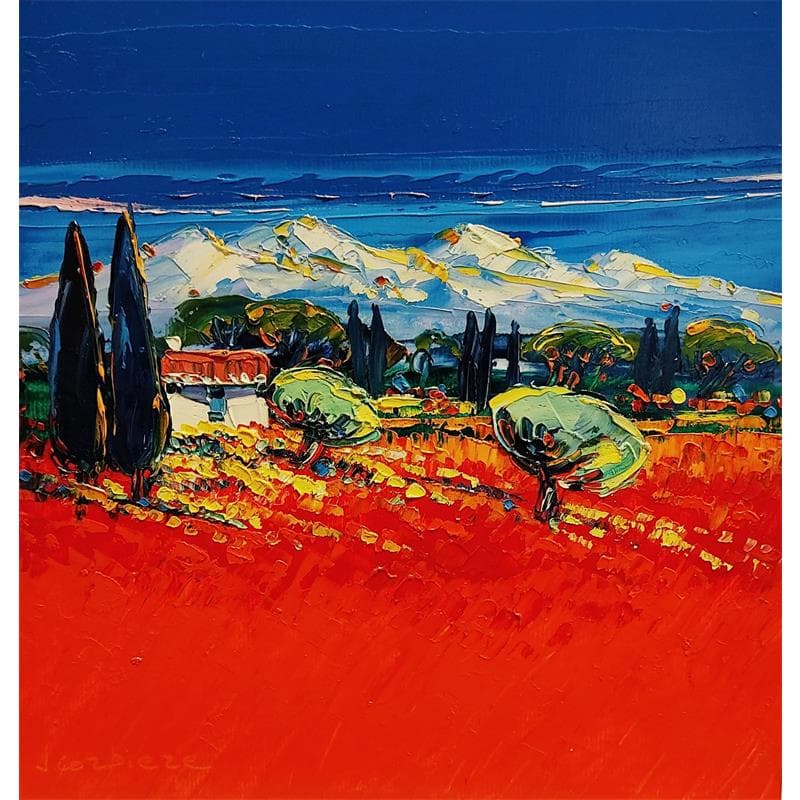 This unique and original contemporary artwork "Cabane dans la plaine des Alpilles" on the subjects of Marine, Landscapes has been created by the contemporary artist Corbière Liisa.