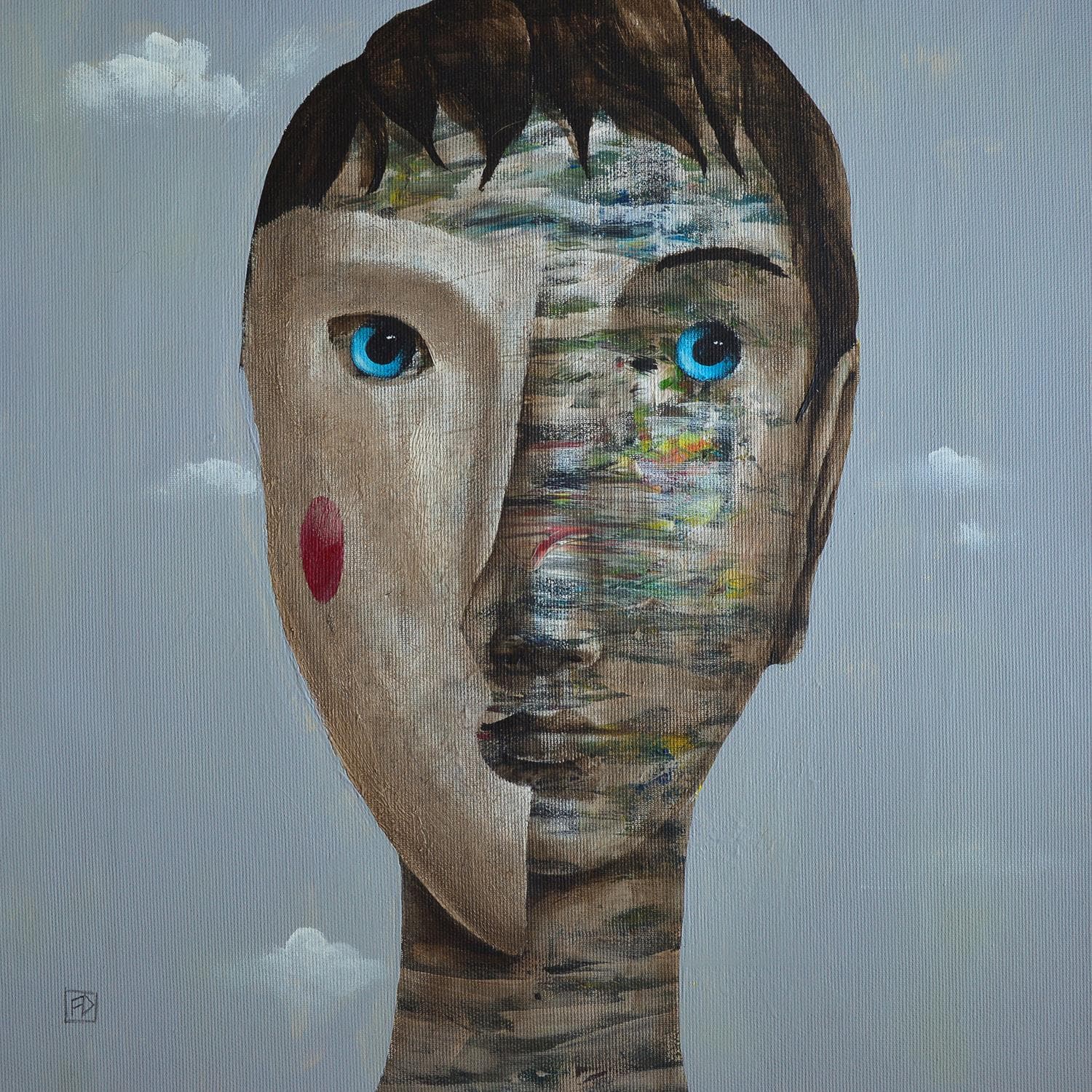 Decorator trained at the Opera of Bordeaux and painter, Fabien is initiated to the techniques of the audiovisual, more particularly to photography, before turning later to an apprenticeship of plastic arts. Trained in the mastery of pictorial skills from classical painting to trompe-l'oeil, his art reveals itself in the execution of an original and dreamlike contemporary figurative painting. Fragments of individuals impregnated with a timeless and fantastic poetry, Fabien's works plunge us into a contemplation "in mirror". Thus, of the two, who stares at the other?