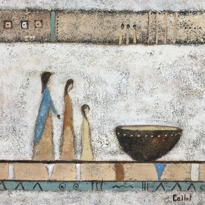 Christine Collet is a self-taught artist whose inspiration comes from her many travels and encounters with diverse cultures. Fascinated by the traces of life left by time, she finds in old writings, ruins and the colors of the earth an inexhaustible source of creativity. Her works reflect a unique visual language, nourished by her personal experience and history. Christine creates canvases that capture the essence of humanity and objects that have survived the ages.