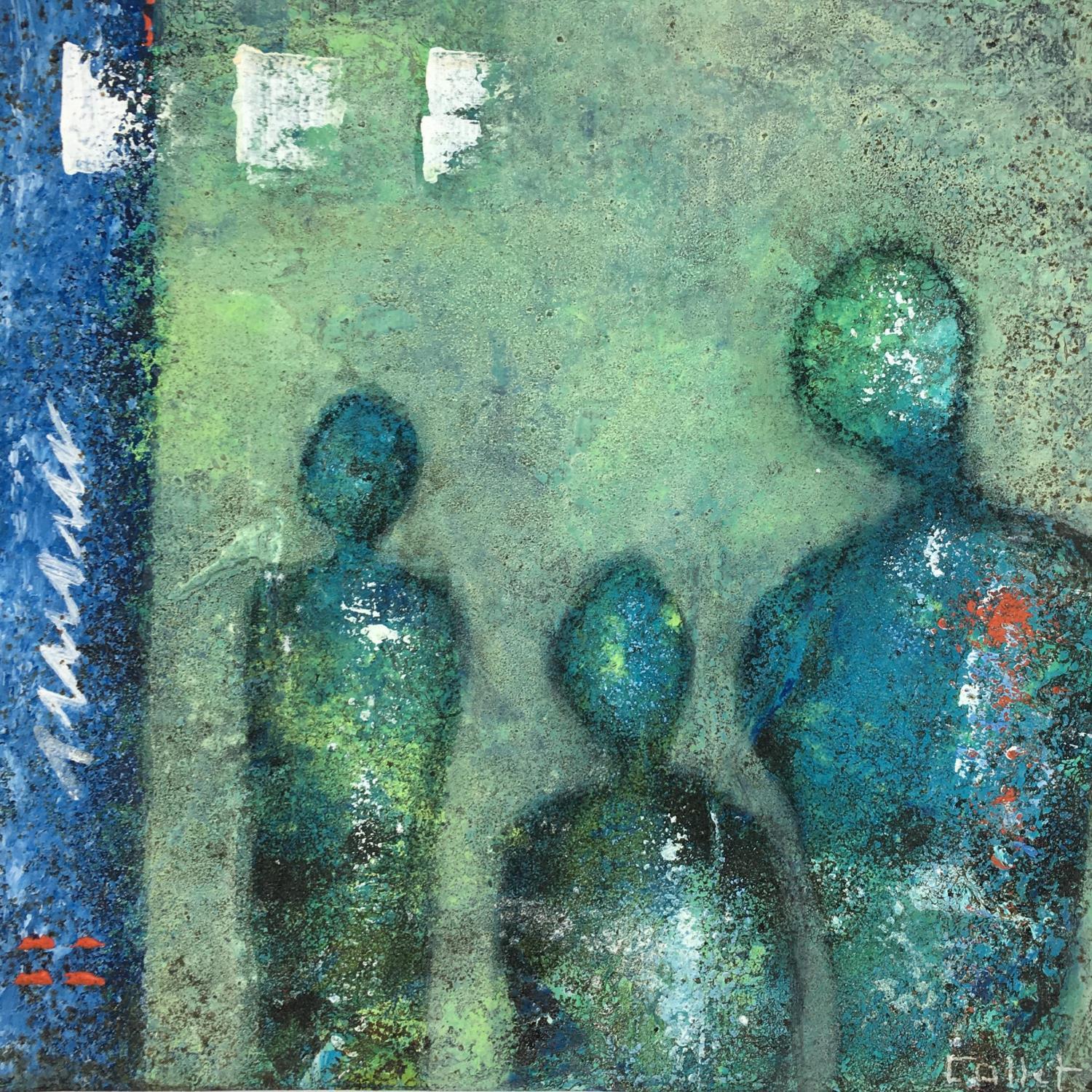 Pintura Les 3 amis por Collet Christine | Pintura Raw art Minimalist Acrylic