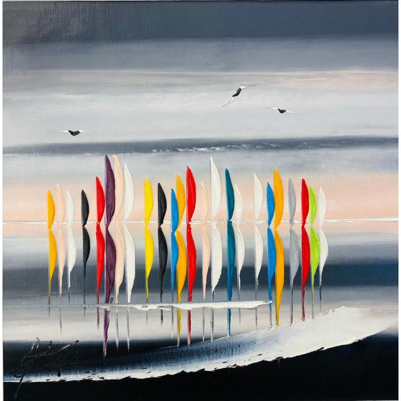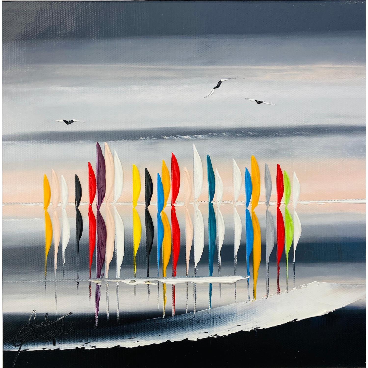 This unique and original contemporary artwork "l'horizon avec toi" on the subject of Marine has been created by the contemporary artist Fonteyne David.