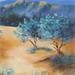 This unique and original contemporary artwork "Plaine aux oliviers" on the subject of Landscapes has been created by the contemporary artist Lyn.
