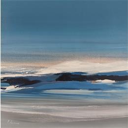 Viviane focused her painting on the different landscapes of our planet, notably in Canada and Polynesia as well as the USA, before placing her paintbrushes and canvases on the edge of the Atlantic. Today she has installed her studio in the heart of the Guerande peninsula, where she lives surrounded by marine horizons, beaches of fine sand, salt marshes and savage dunes. Viviane principally uses oil paints with very different tools, chosen depending on the effect she wishes to create. She loves to play with diluted colours and impasto and creates a marine dynamic in her works and the volume and the reliefs remind us of small, gushing waves.