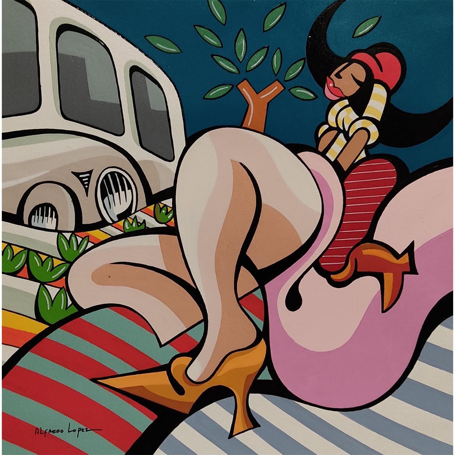 This unique and original contemporary artwork "SOUVENIR DE L'INSOUCIANCE" on the subject of Life style has been created by the contemporary artist Lopez Alfredo.