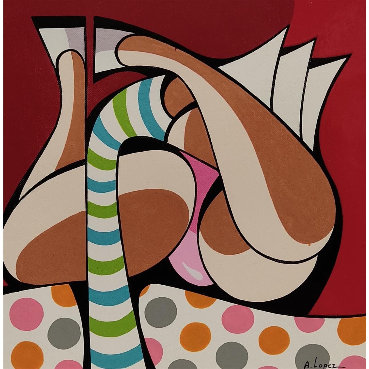 Born in 1964, Alfredo Lopez is a Bolivian-born artist who grew up in Spain before moving to Paris. Today, he lives and works near Chartres. His artistic career began in carefree times, with a vocation for freedom and sincerity. After working in advertising for fifteen years, he devoted himself fully to painting. His works, characterized by vivid colors and central characters, are narratives of everyday life, translating his neo-punk and benevolent sensibility.