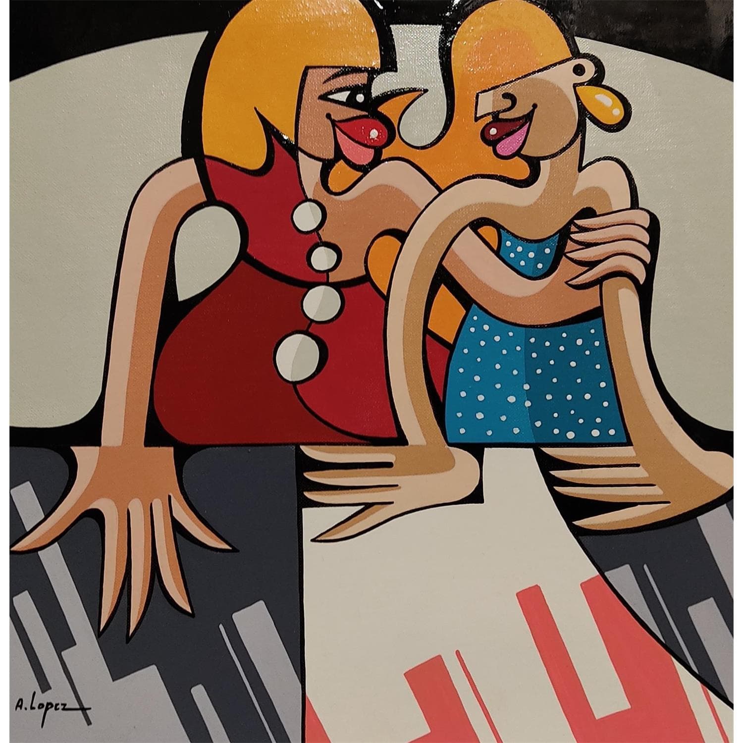 This unique and original contemporary artwork "PASSATION MERE FILLE" on the subject of Life style has been created by the contemporary artist Lopez Alfredo.