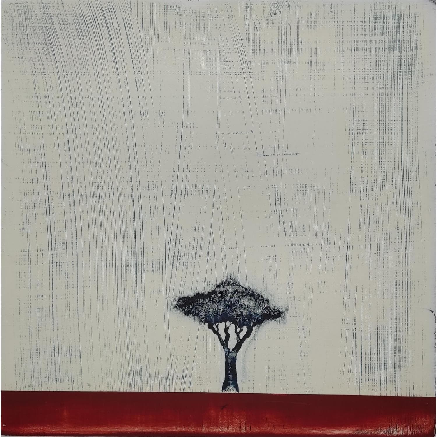 Despite the radical nature of his art, he likes to say he never repeats himself "every time is just a try," Christophl says. A photographer by trade, it is through related screen-printing technology that he, for the first time, flirted with inks and pigments. In the early 2000s, he selftaught himself monotype and adapted it for his purposes, finding a writing technique, but he remained, like so many others before him, desperately unsatisfied. So he tried a variety of media: paper, wood and finally painting while multiplying techniques: acrylic paint, ink or wax on wood or cardboard. Christophe devotes his pictorial art to landscapes. An almost abstract painting, tormented and full of matter, where one or more trees appear, marking the end of his meticulous work in homage to the vegetable kingdom.