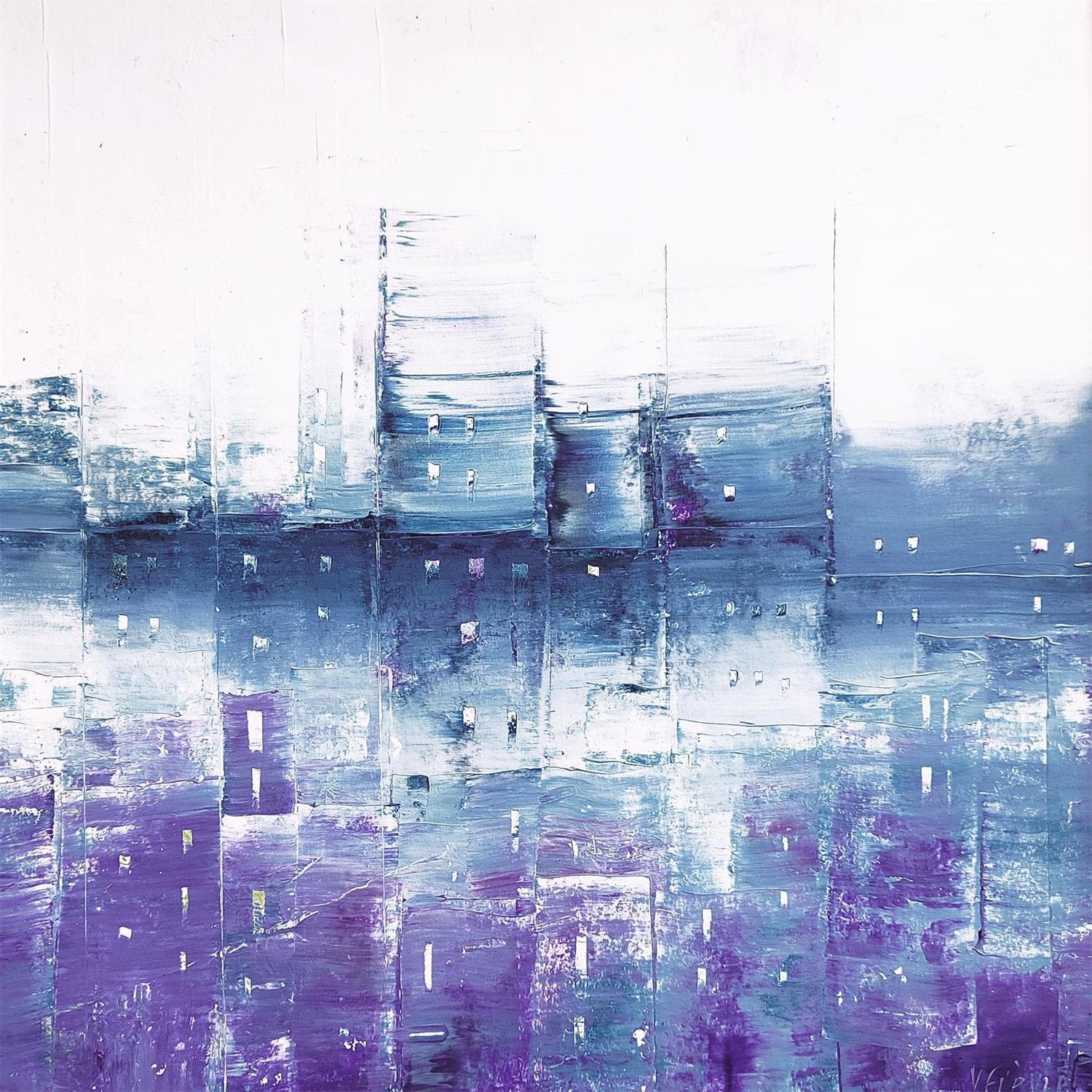 This unique and original contemporary artwork "Maisons dans la brume #1" on the subject of Urban has been created by the contemporary artist Fièvre Véronique.