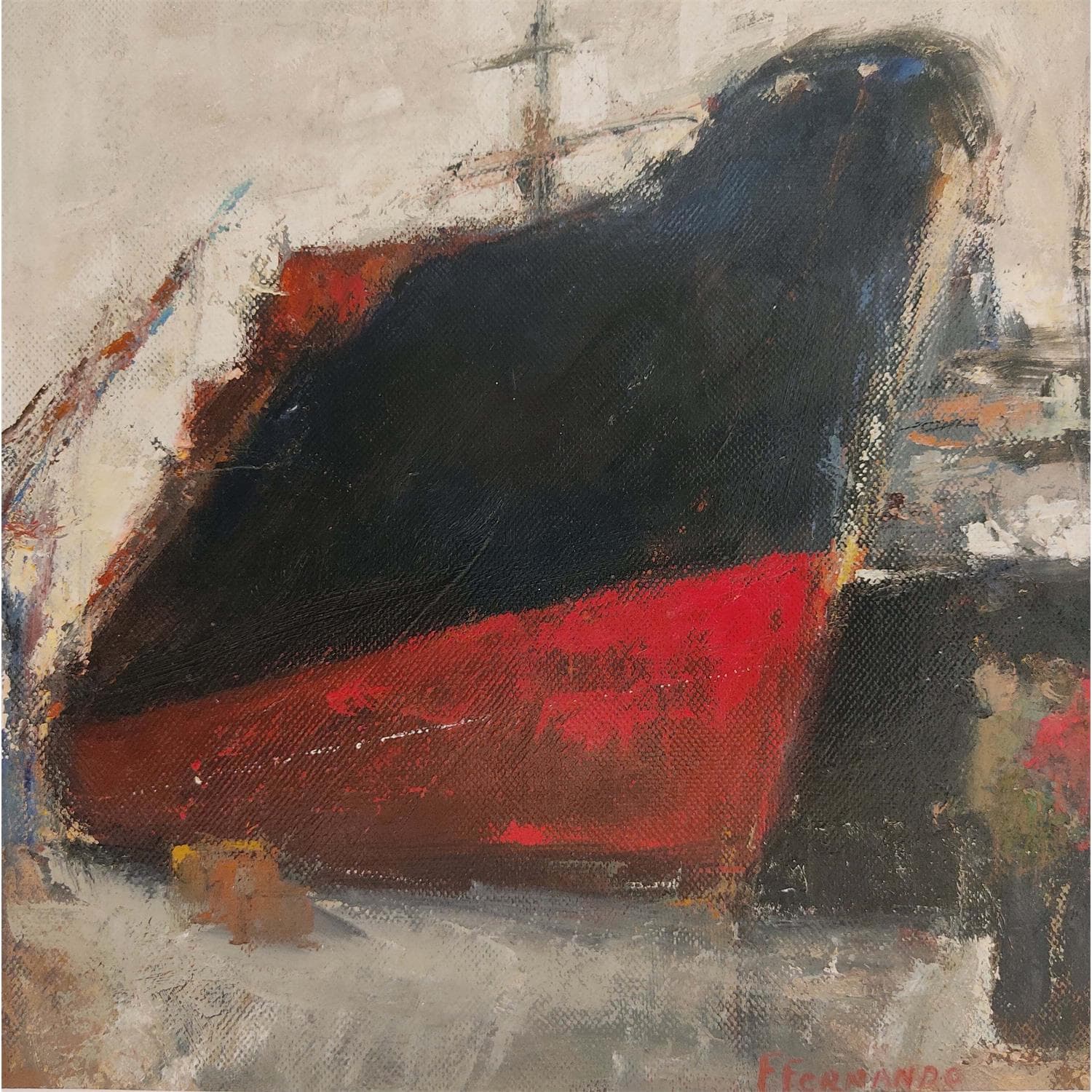 This unique and original contemporary artwork "Au quai" on the subject of Landscapes has been created by the contemporary artist Fernando.