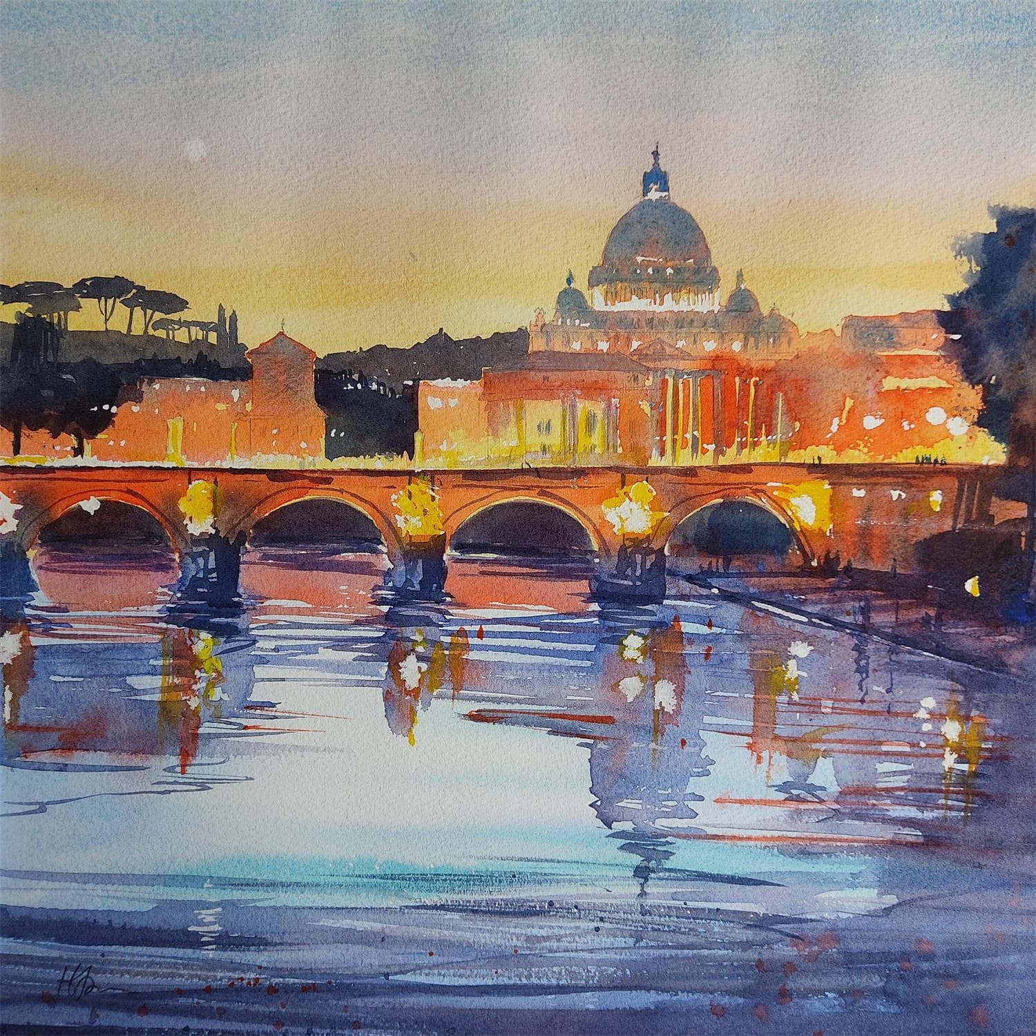 This unique and original contemporary artwork "Tiber Glow" on the subject of Urban has been created by the contemporary artist Jones Henry.