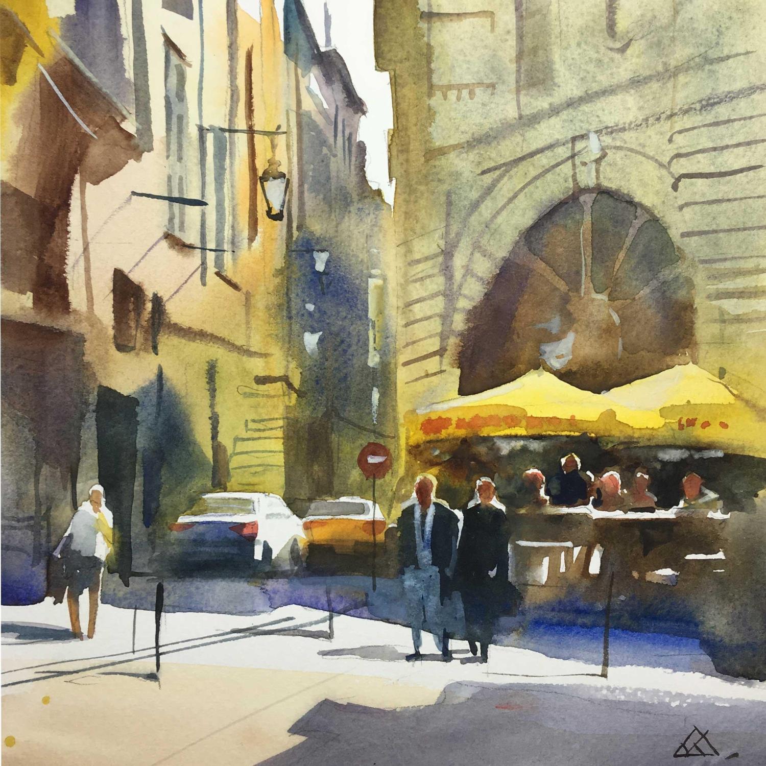 Pintura Attablès por Khodakivskyi Vasily | Pintura Figurative Urban Watercolor