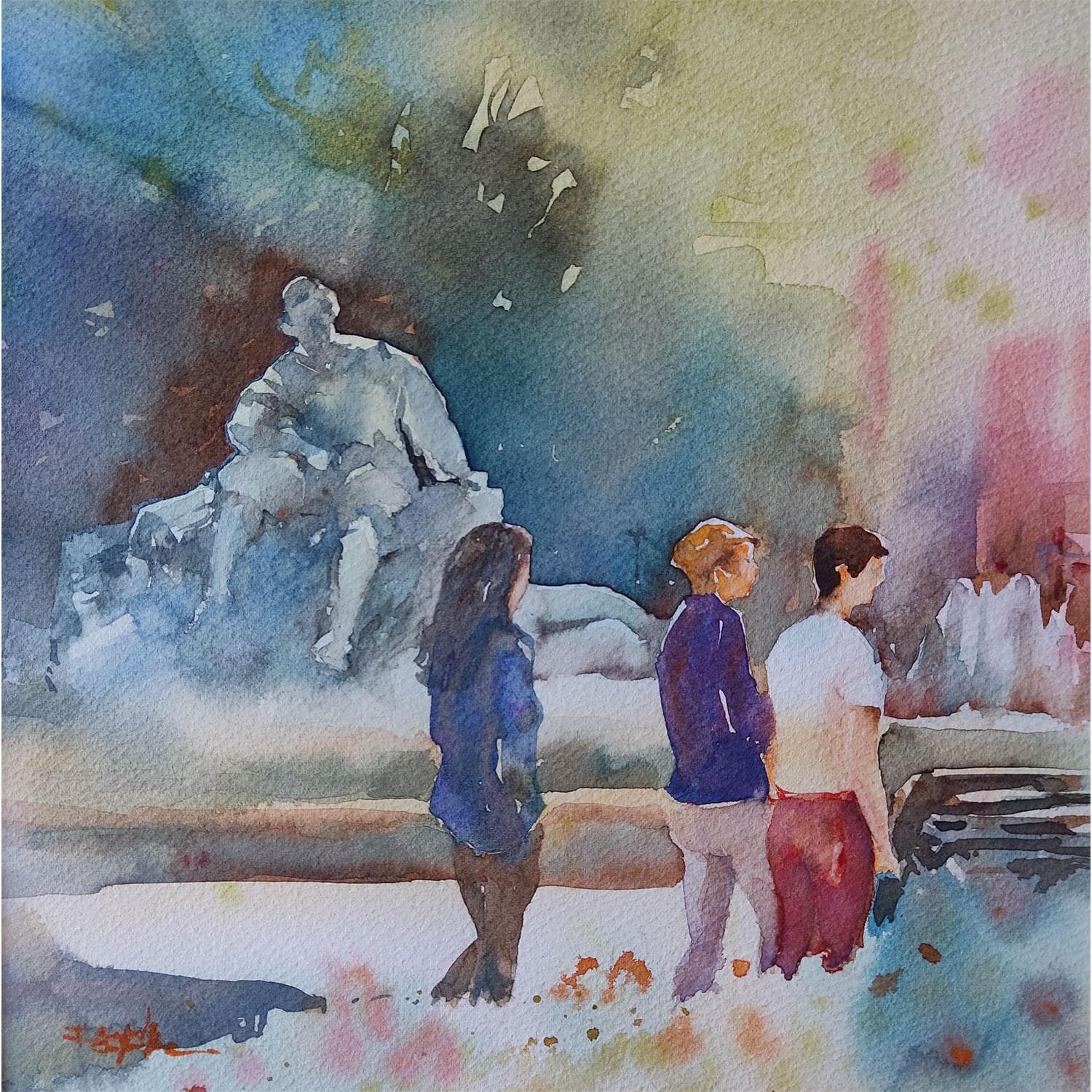 The artist used Watercolor medium on Paper to create this Figurative, Small size painting.