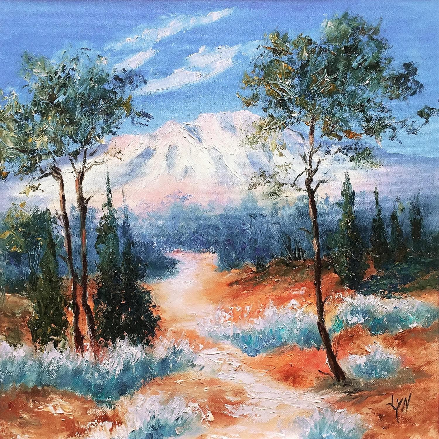 This unique and original contemporary artwork "Pins et Sainte-Victoire" on the subject of Landscapes has been created by the contemporary artist Lyn.