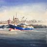 Fishing trawler at ScheveningenPintura Fishing trawler at Scheveningen por Min Jan | Pintura Figurative Marine Watercolor