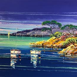 This unique and original contemporary artwork "Escale du soir, côte varoise" on the subject of Landscapes has been created by the contemporary artist Corbière Liisa.