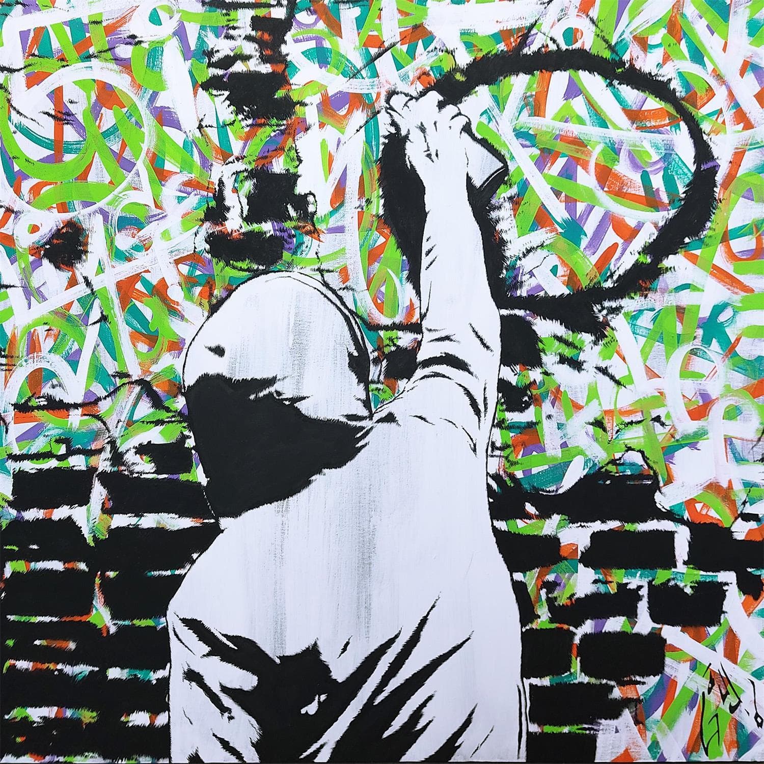 The artist used Acrylic medium on Canvas to create this Street art, Large size painting.