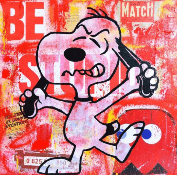Il est peu encombrant, car il ne mesure que 13 cm x13 cm. L'œuvre « Snoopy pilote » de Kikayou peut aussi répondre à vos exigences.