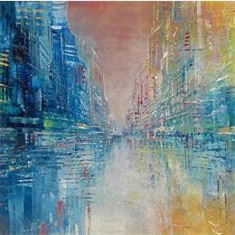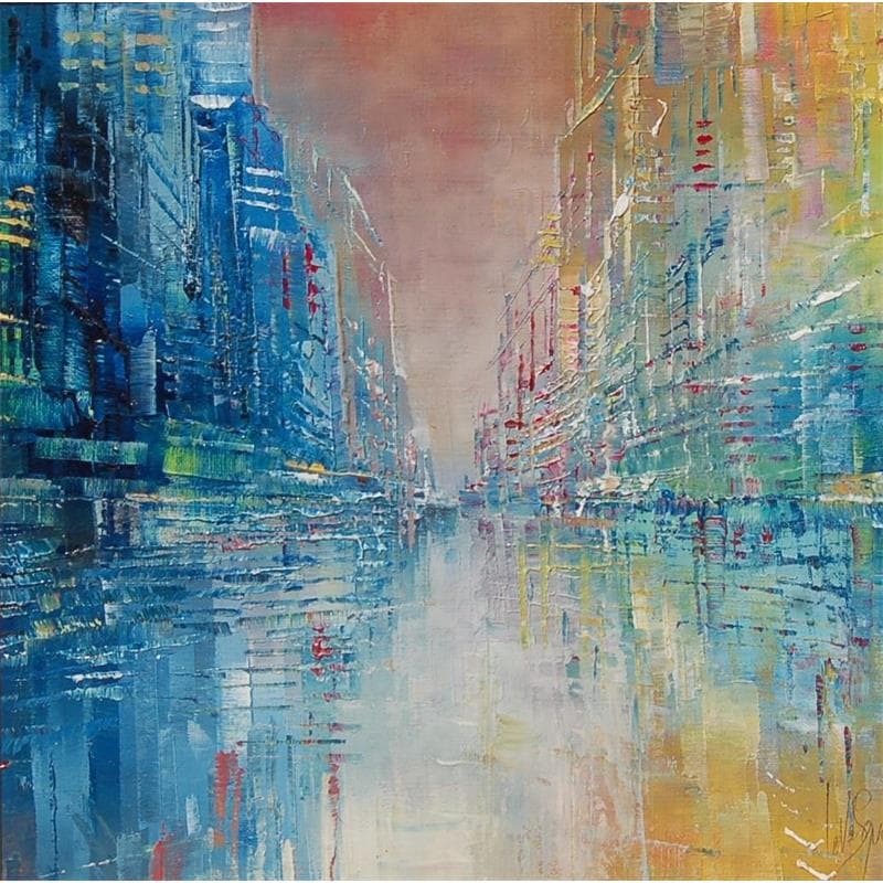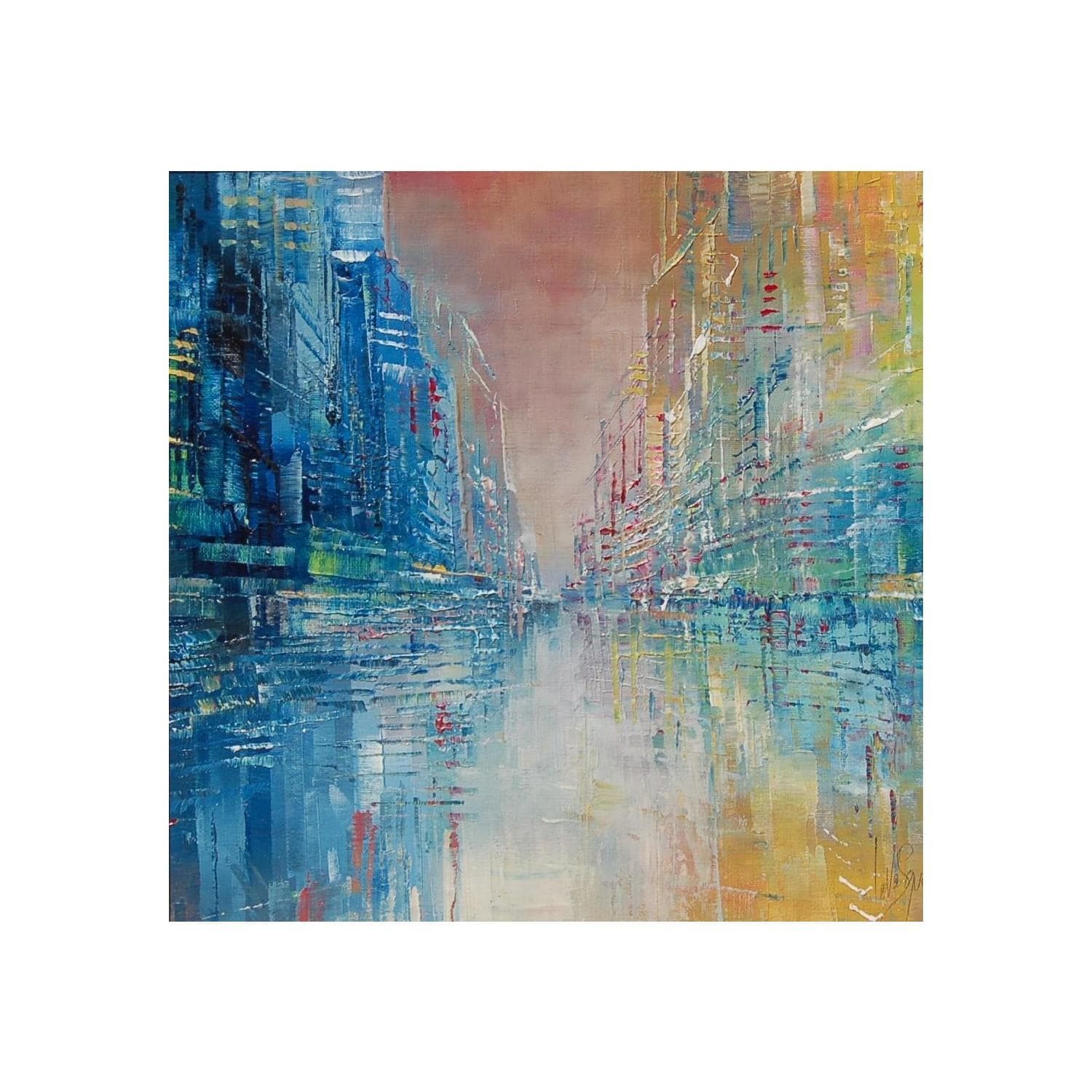 L'artiste a utilisé la technique Huile pour créer cette peinture petit format sur toile de style Abstrait sur le thème Urbain.