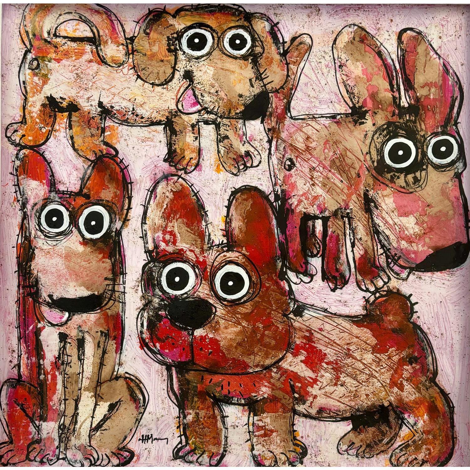 Cette oeuvre d'art contemporain unique et originale "Dogs in the square" a été réalisée par l'artiste contemporain Maury Hervé.