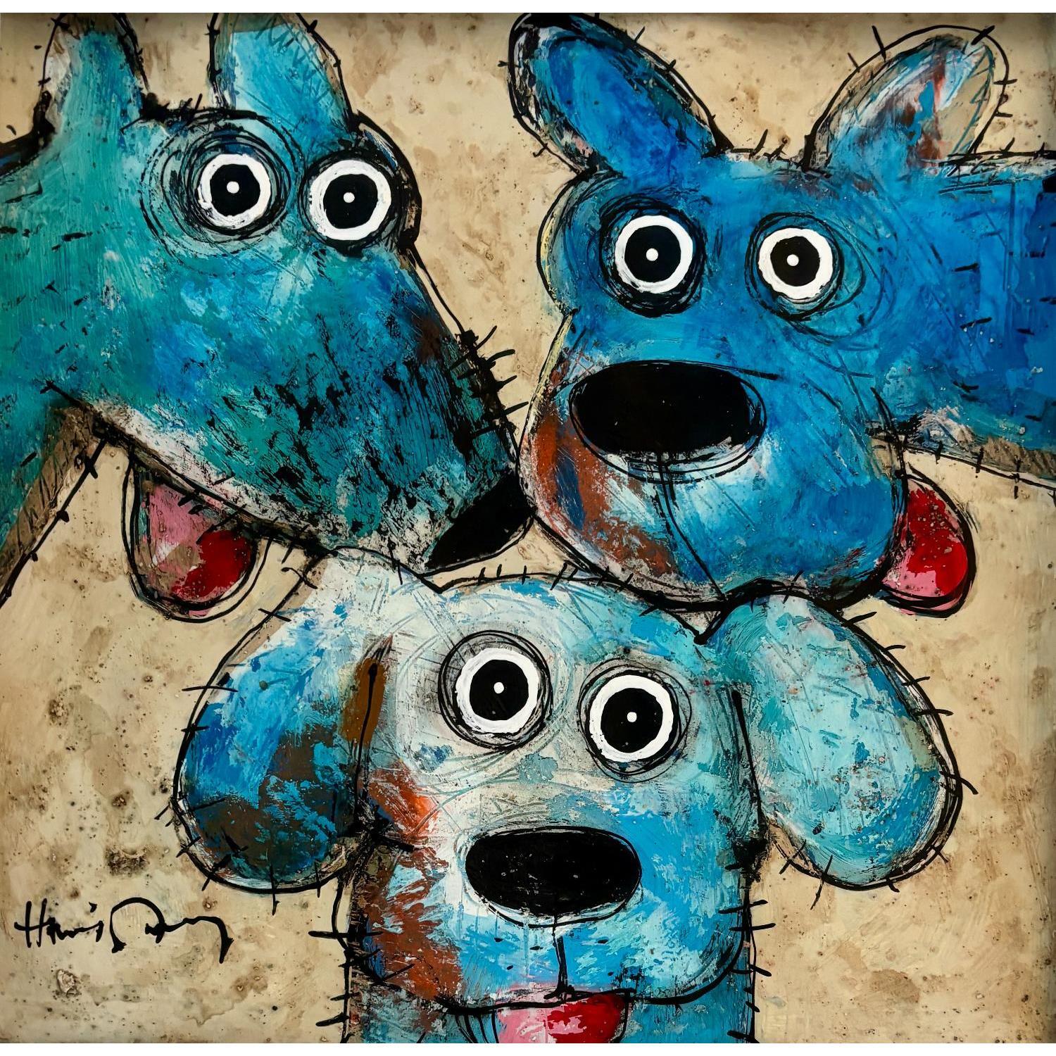 Peinture Happy dogs par Maury Hervé | Tableau Art Singulier Animaux