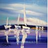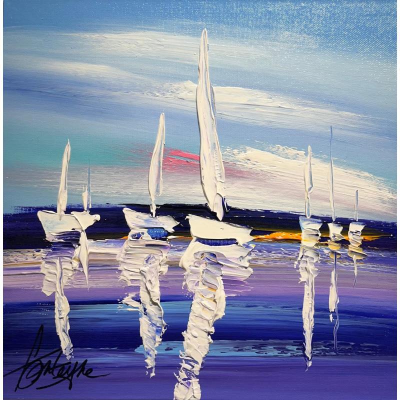 L'artiste a utilisé la technique Acrylique pour créer cette peinture petit format sur Carton toilé de style Figuratif sur le thème Marine.