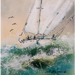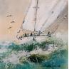 L'artiste a utilisé la technique Acrylique pour créer cette peinture petit format sur Papier de style Figuratif sur le thème Marine.