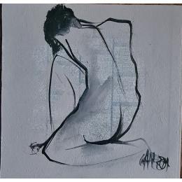 L'artiste a utilisé la technique Acrylique pour créer cette peinture petit format sur Papier de style Figuratif sur le thème Nu.