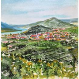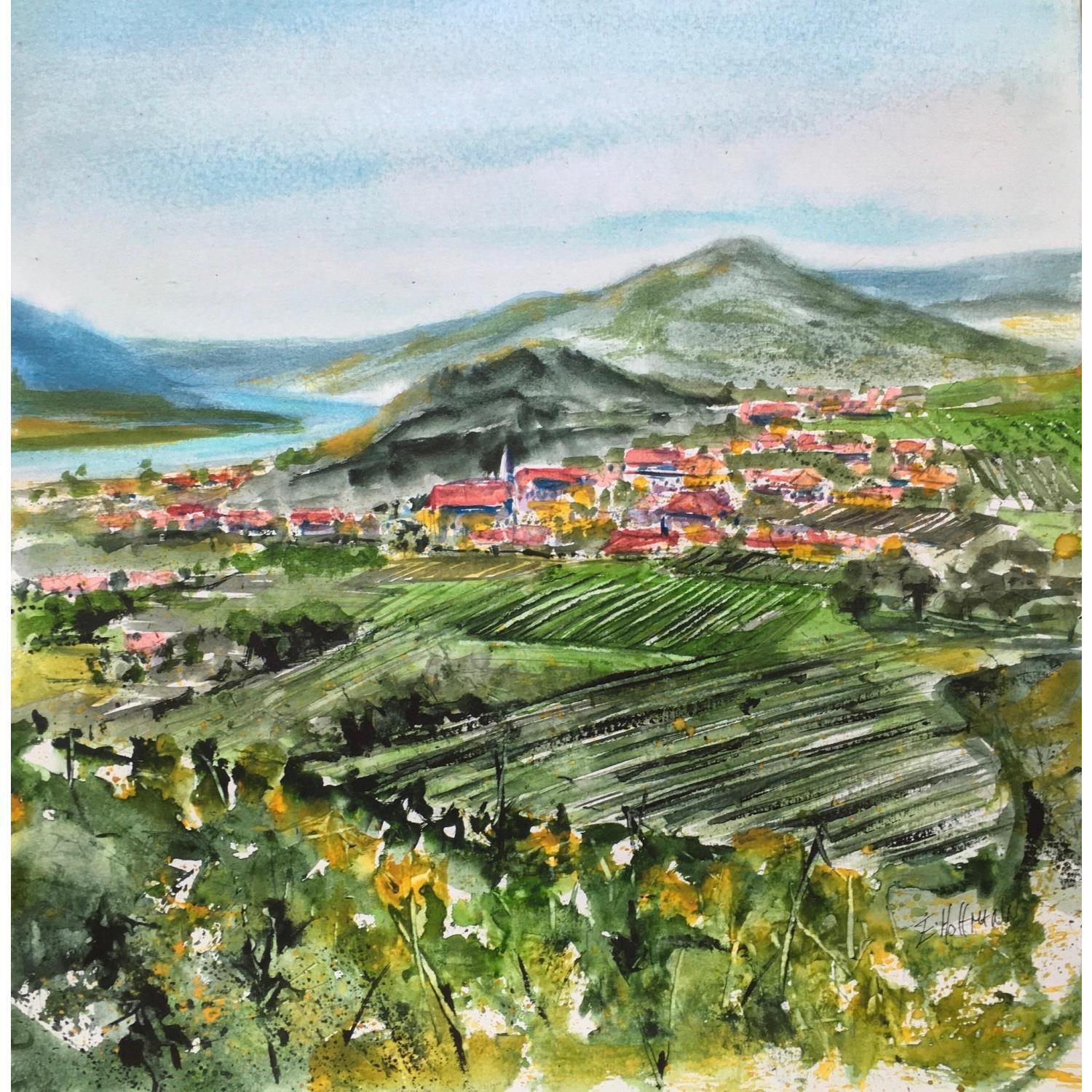 Peinture Autriche Vignobles par Hoffmann Elisabeth | Tableau Figuratif Paysages Aquarelle