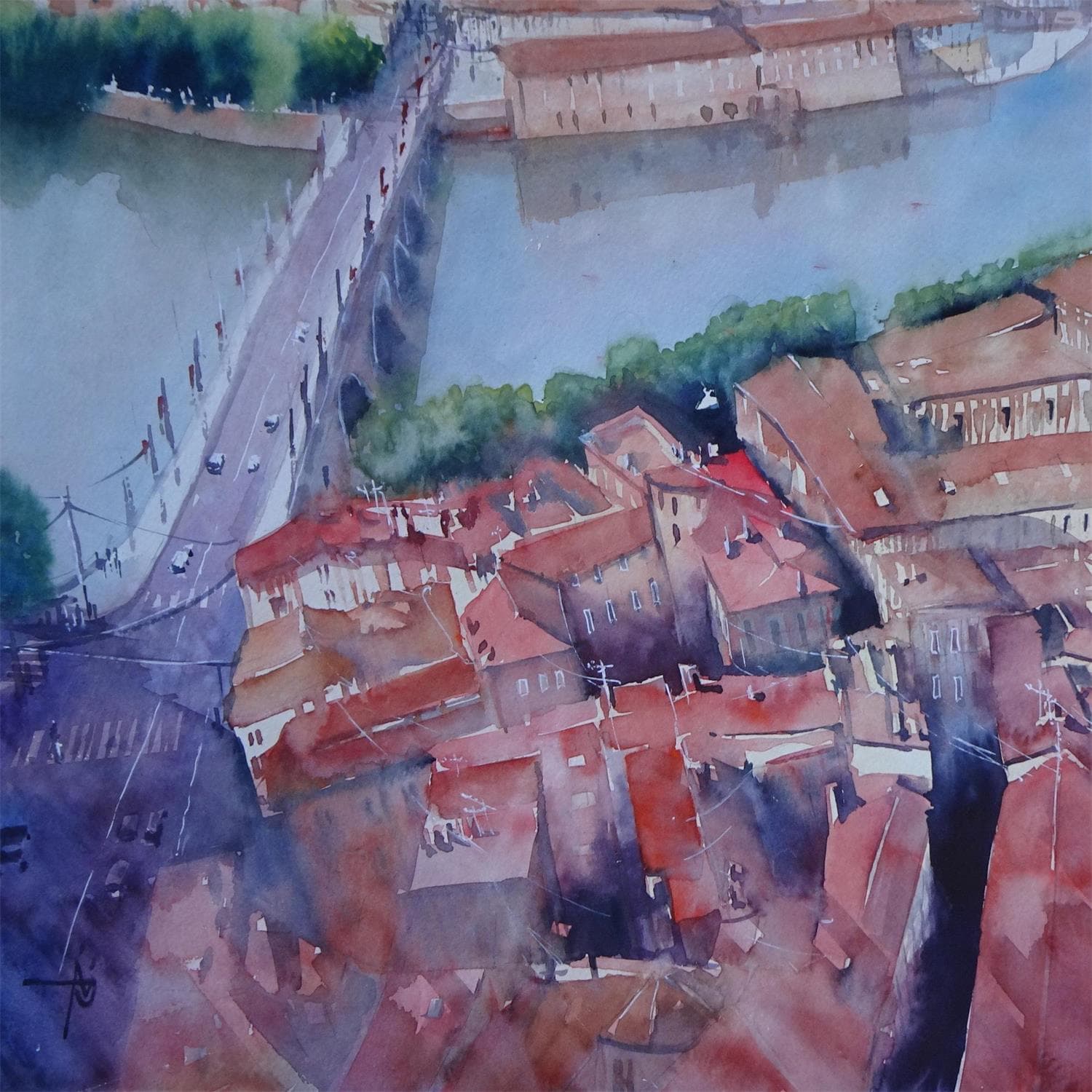 Par dessus la GaronnePeinture Par dessus la Garonne par Abbatucci Violaine | Tableau Figuratif Urbain Aquarelle