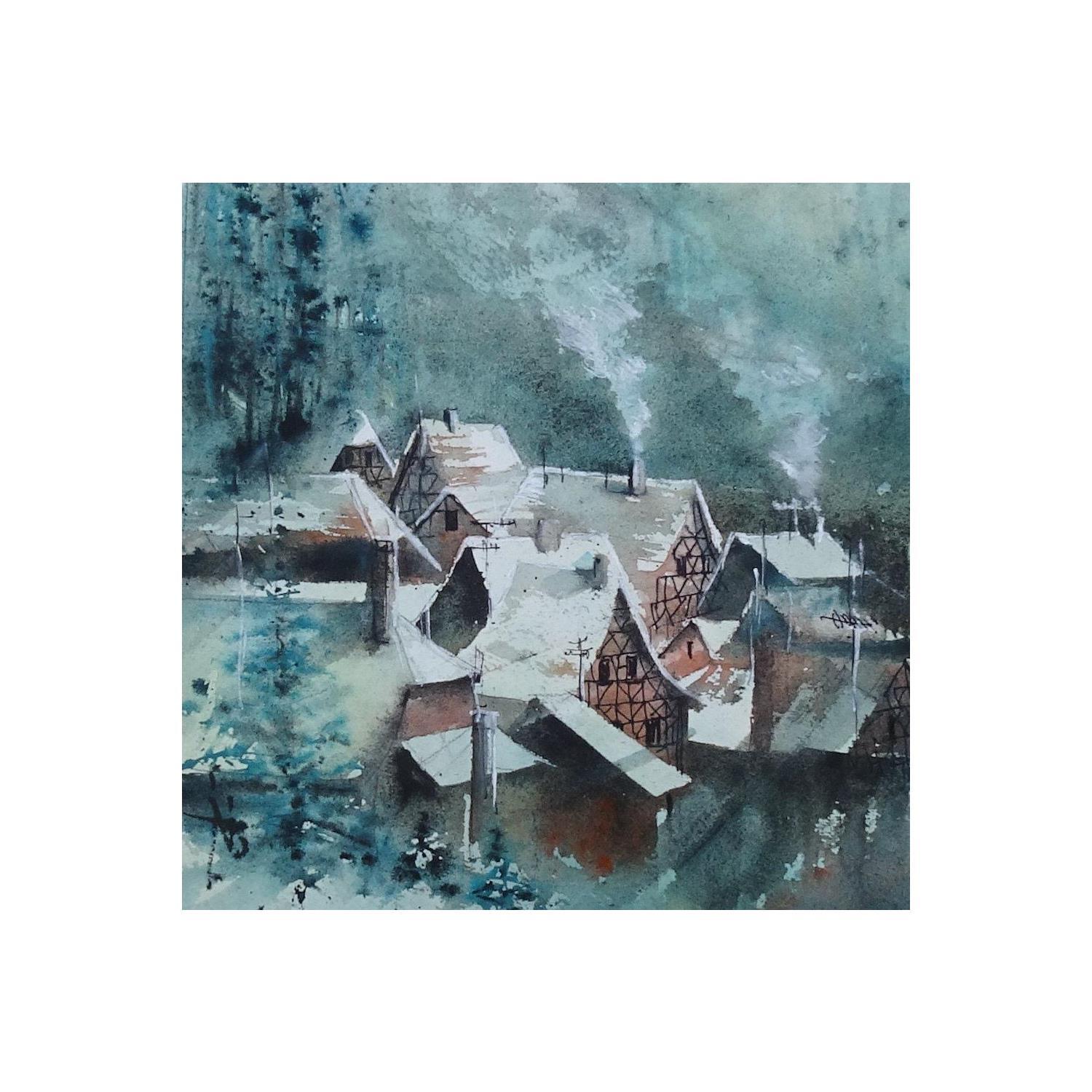 Peinture Bien au chaud chez soi par Abbatucci Violaine | Tableau Figuratif Aquarelle