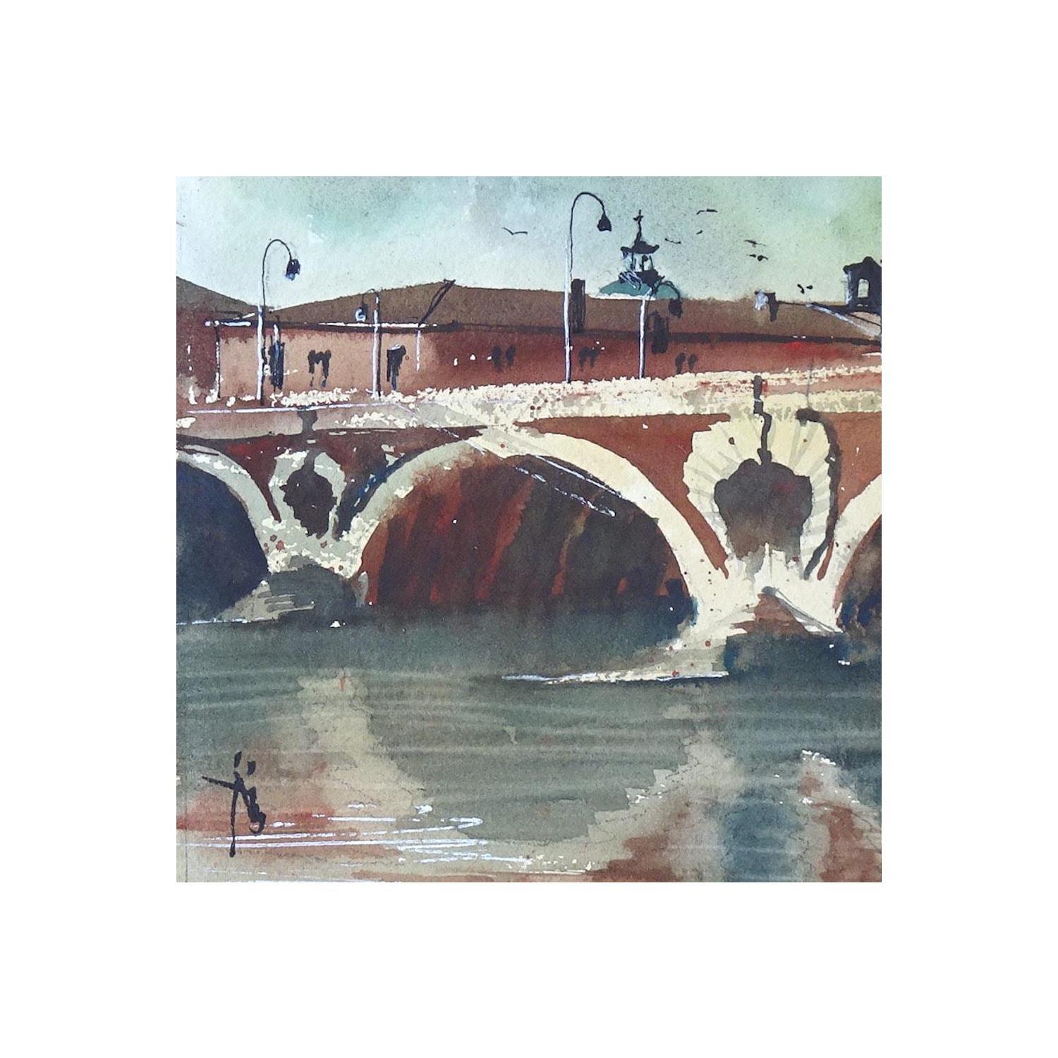 Un automne à ToulousePeinture Un automne à Toulouse par Abbatucci Violaine | Tableau Figuratif Aquarelle