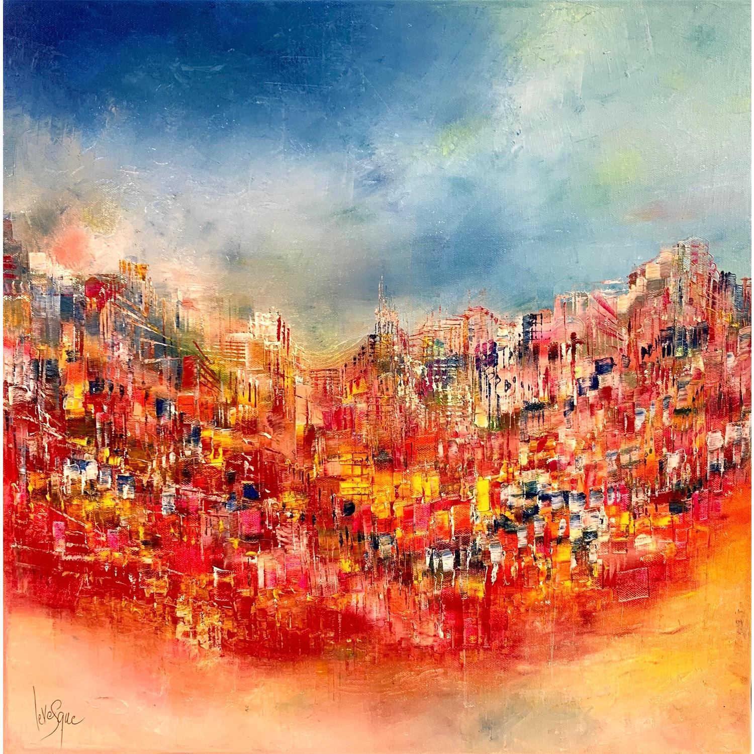 Peinture Une ville merveilleuse par Levesque Emmanuelle | Tableau Huile