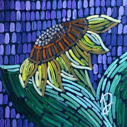 Cette oeuvre d'art contemporain unique et originale "Tournesol sur violet" a été réalisée par l'artiste contemporain Dmitrieva Daria.