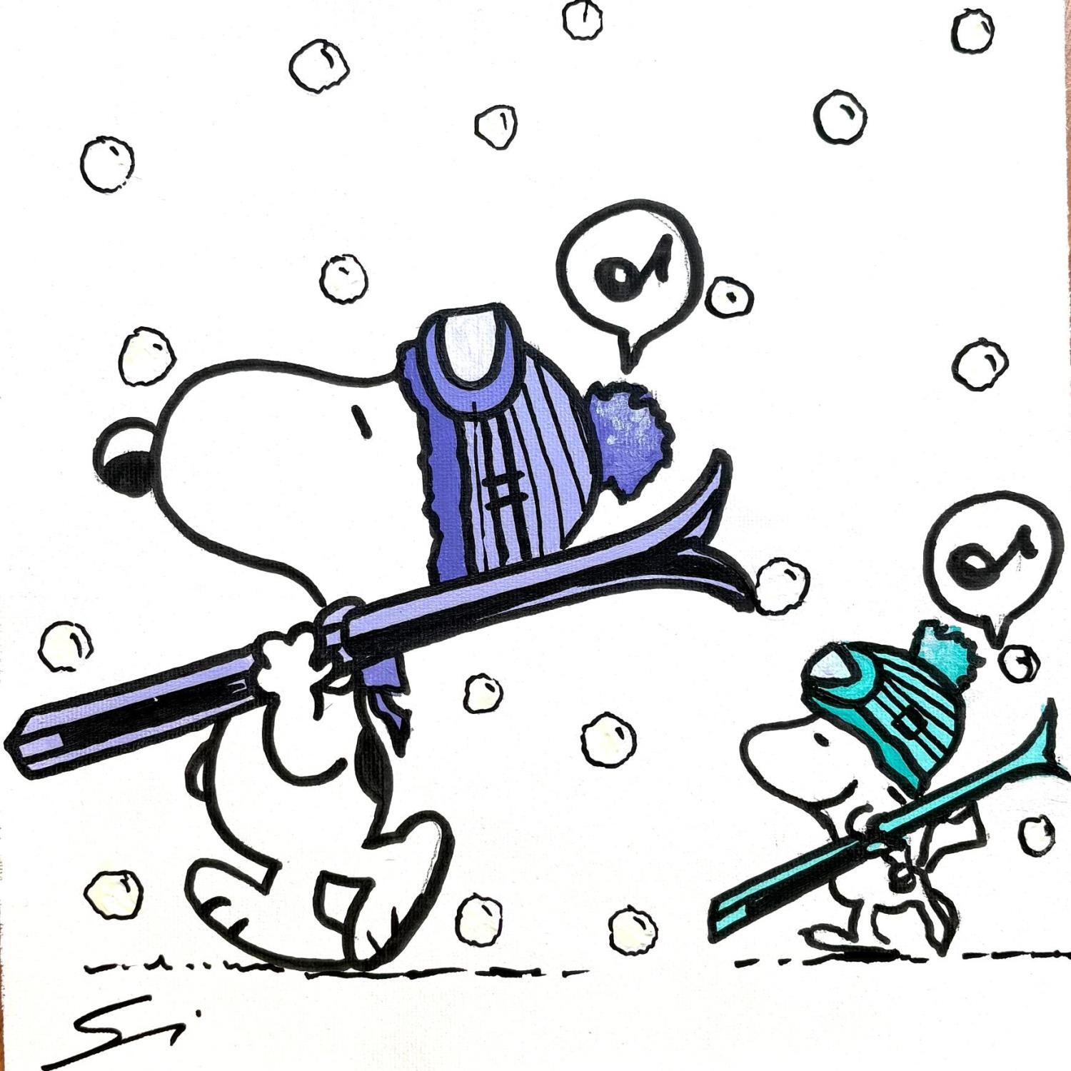 Cette oeuvre d'art contemporain unique et originale "SNOOPY IN FLUOR SNOW" a été réalisée par l'artiste contemporain Mestres Sergi.