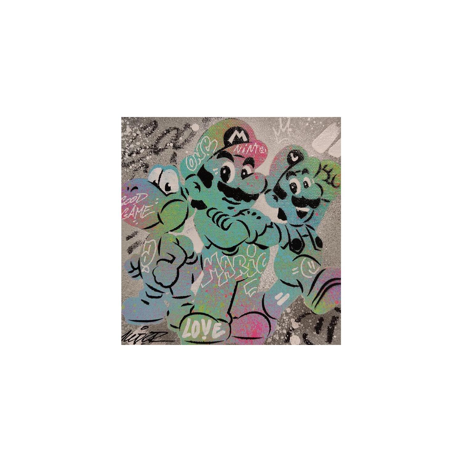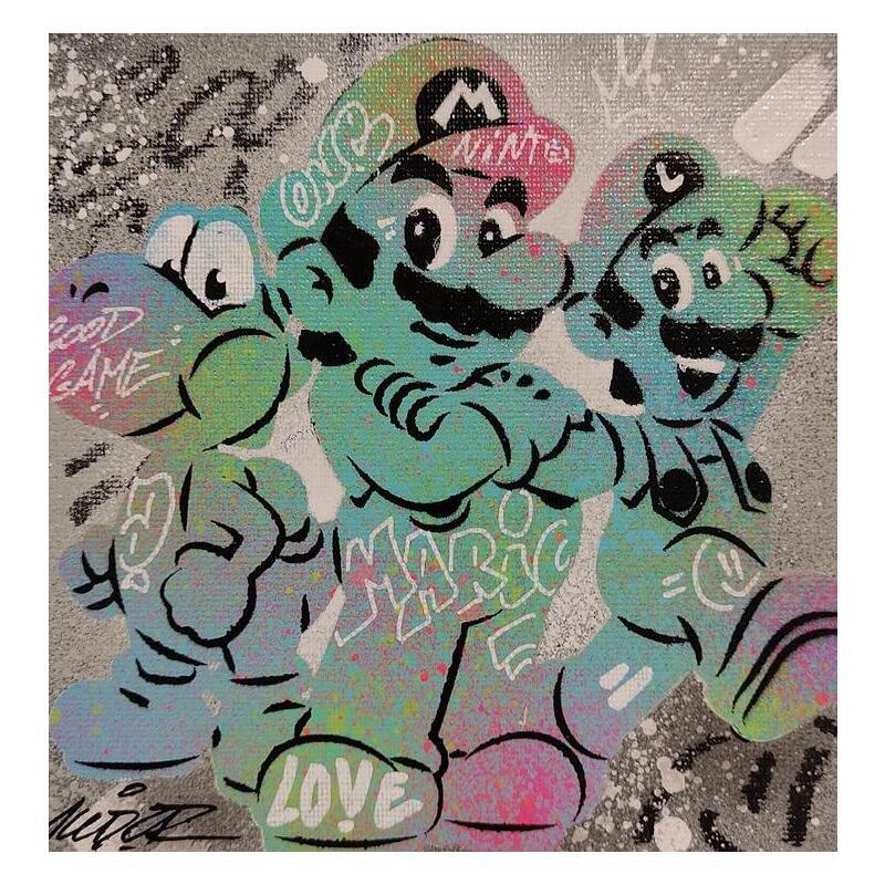Cette oeuvre d'art contemporain unique et originale "Luigi Mario Yoshi" a été réalisée par l'artiste contemporain Kedarone.