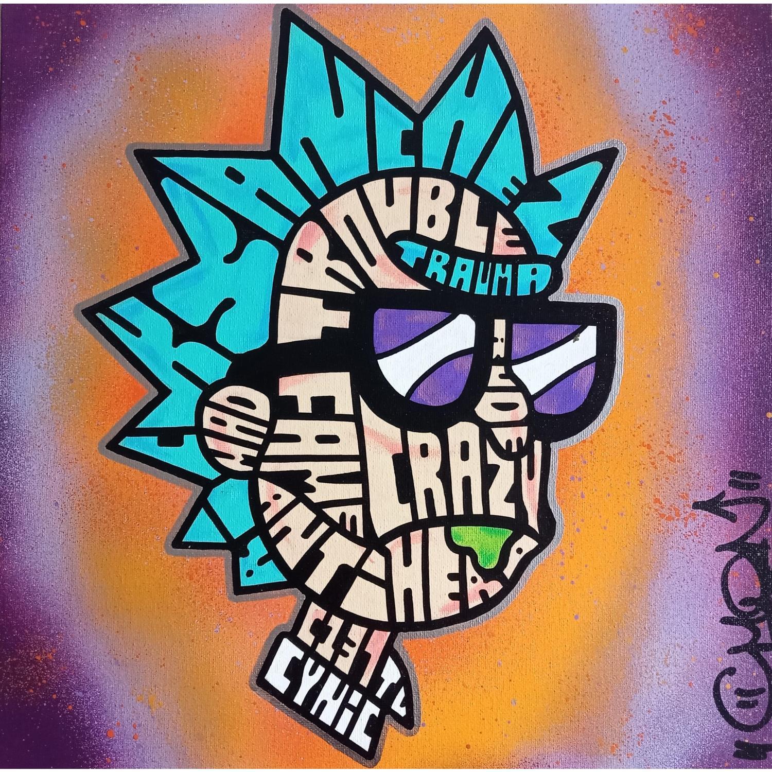 Cette oeuvre d'art contemporain unique et originale "Cool Rickie Purple Galaxy " a été réalisée par l'artiste contemporain Cmon. L'artiste a utilisé différentes techniques pour créer cette peinture petit format de style Pop-art sur le thème Icones Pop.