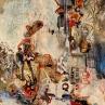 L'artiste a utilisé les techniques mixtes, la peinture acrylique pour créer cette peinture petit format sur toile de style semi-abstrait et abstrait.