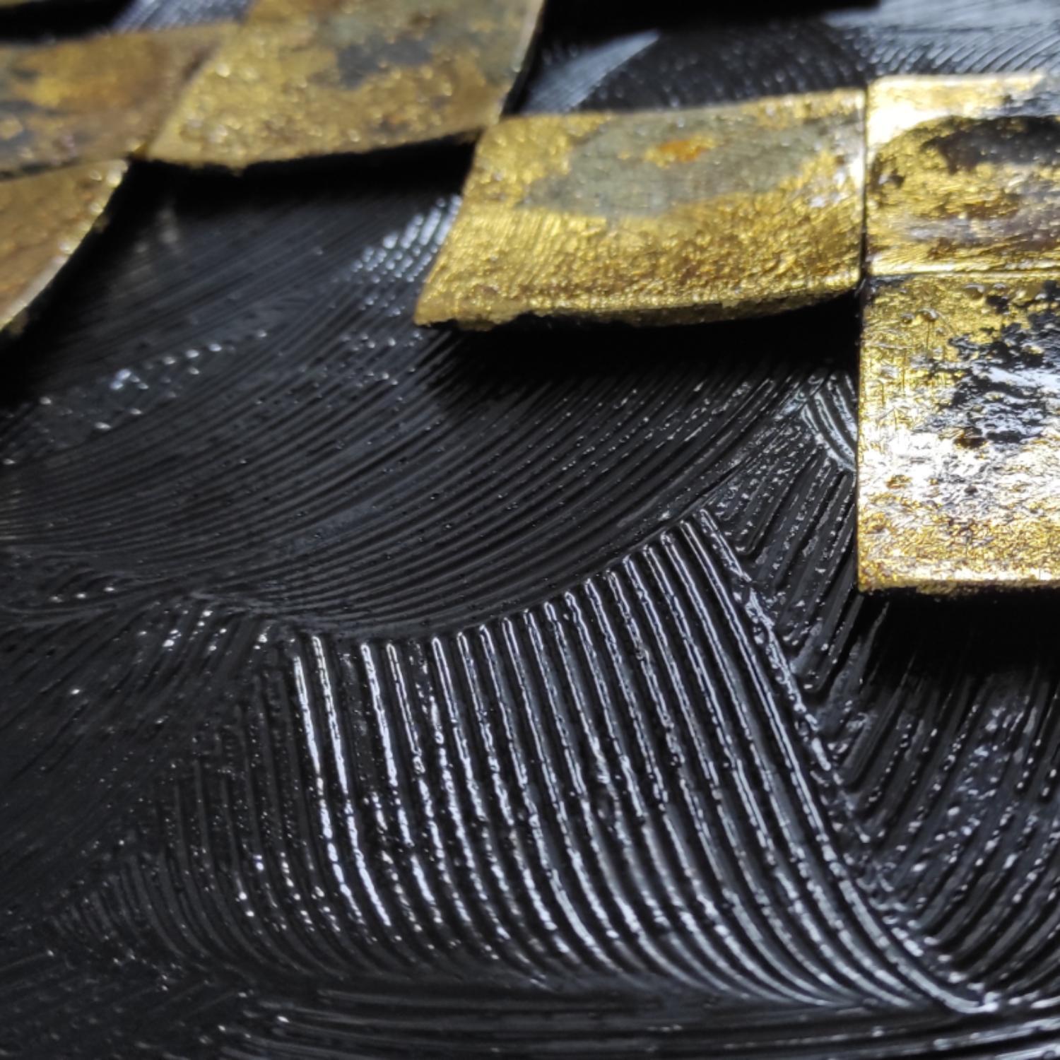 L'artiste a utilisé les techniques Acrylique, Bois, Collage, Laque, Métal, Résine pour créer cette peinture grand format sur Dibon de style Abstrait sur le thème Minimaliste.