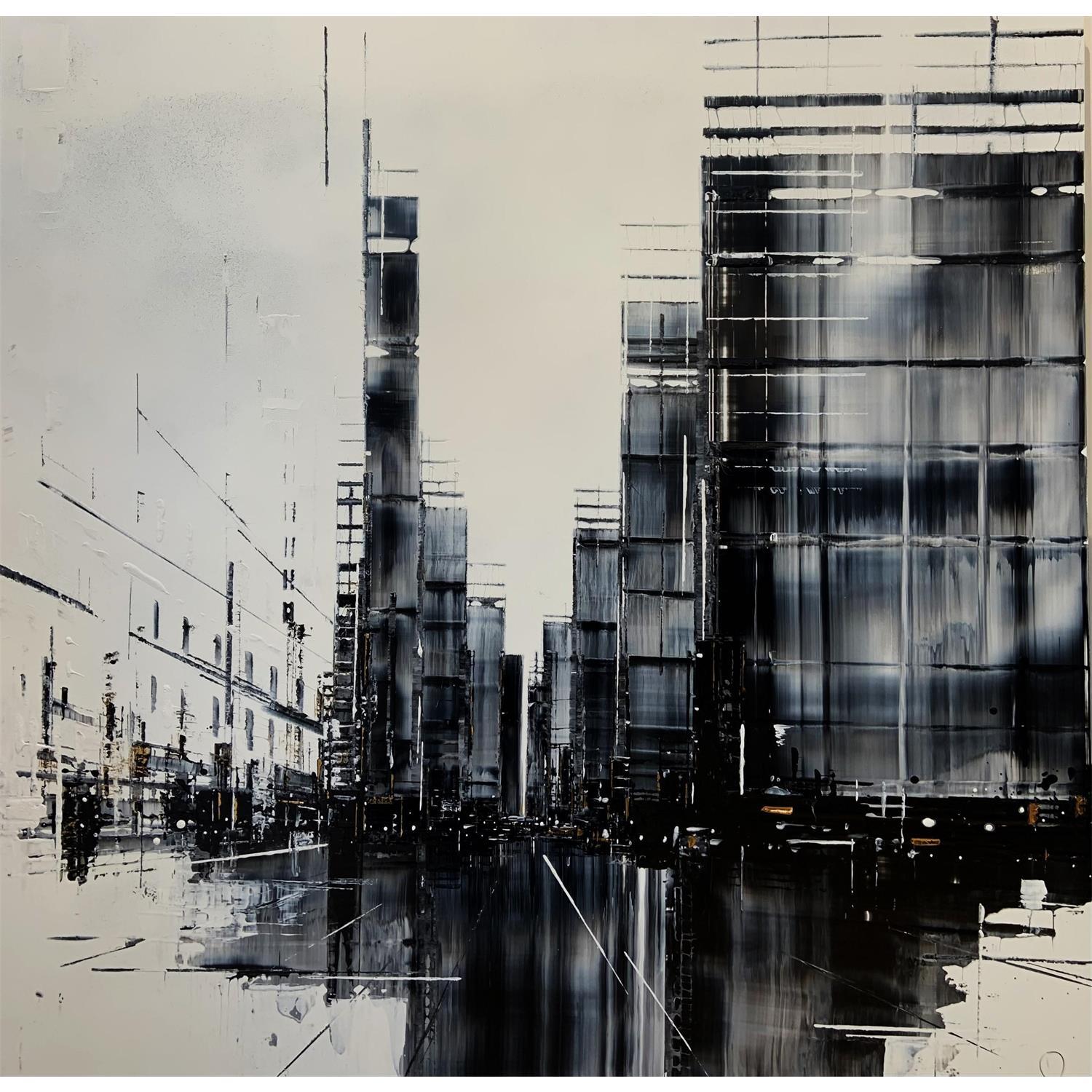 L'artiste a utilisé les techniques Acrylique, bois pour créer cette peinture grand format sur bois de style Abstrait sur le thème Urbain.