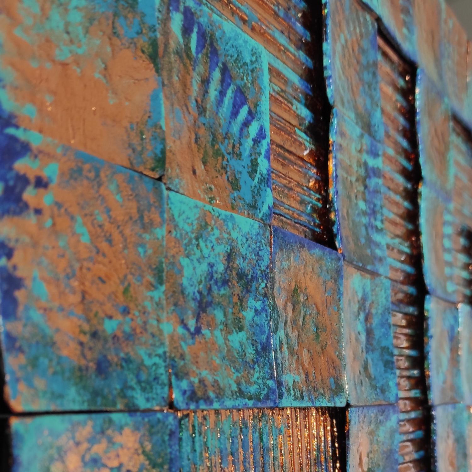 L'artiste a utilisé les techniques Bois, Métal, Collage, Résine, Acrylique pour créer cette peinture grand format sur Dibon de style Abstrait sur le thème Minimaliste.