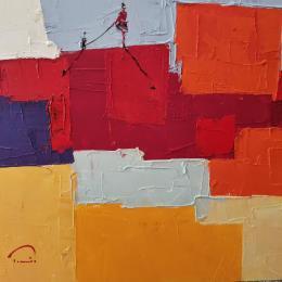 L'artiste a utilisé la technique Huile pour créer cette peinture petit format sur Papier de style Abstrait sur les thèmes Paysages, Scènes de vie.