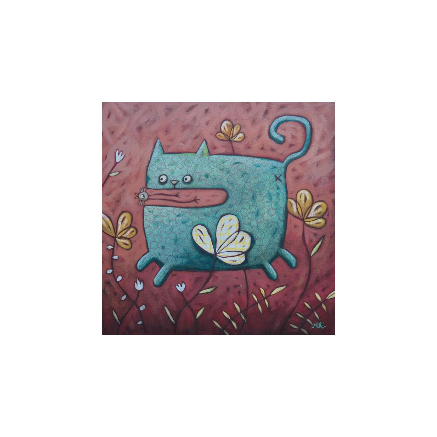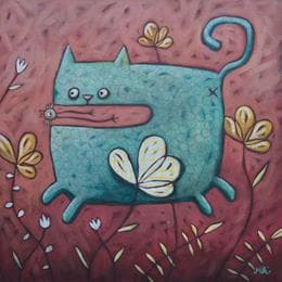 Blue catPeinture Blue cat par Catoni Melina | Tableau Art naïf Animaux