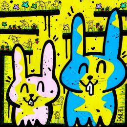 Cette oeuvre d'art contemporain unique et originale "Bunny star" a été réalisée par l'artiste contemporain Ralau.